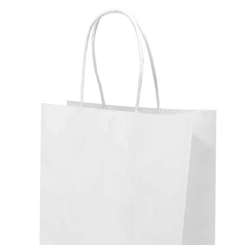 Papīra maisiņi ar vītiem rokturiem - izgatavoti no 110 g/m2 bieza balta kraftpapīra, izturīgi papīra rokturi. Cenas bez PVN