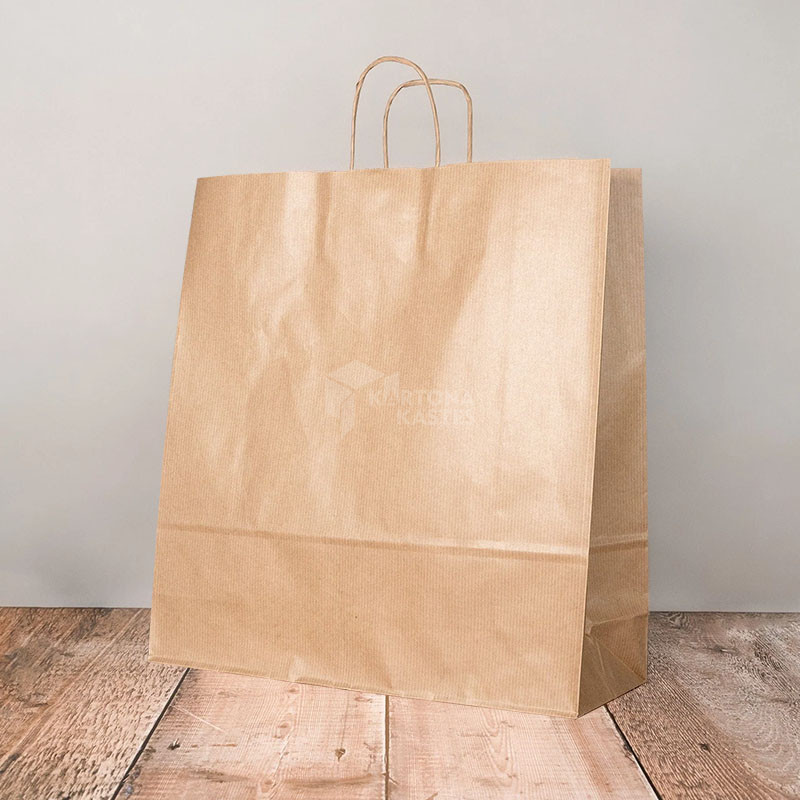 Papīra maisiņi ar vītiem rokturiem - izgatavoti no 110 g/m2 bieza brūna ribbed kraftpapīra, izturīgi papīra rokturi. Cenas bez PVN